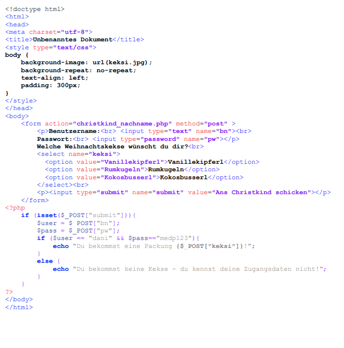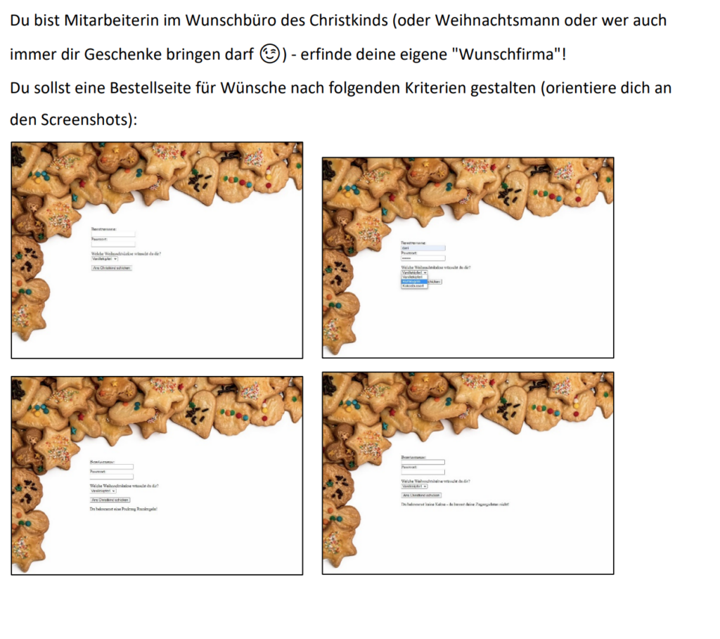 Mithilfe von Beispielbildern durften wir selbst eine Website erstellen.